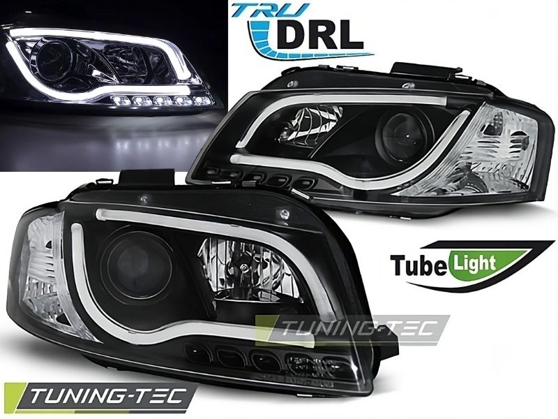 Audi A3 8P 2003-2008 Fari Anteriori LED Lightube DRL Nero