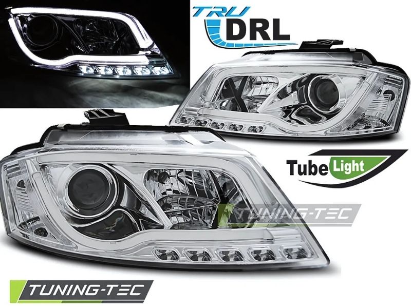 Audi A3 8P 2008-2012 Fari Anteriori LED Lightube DRL Cromato