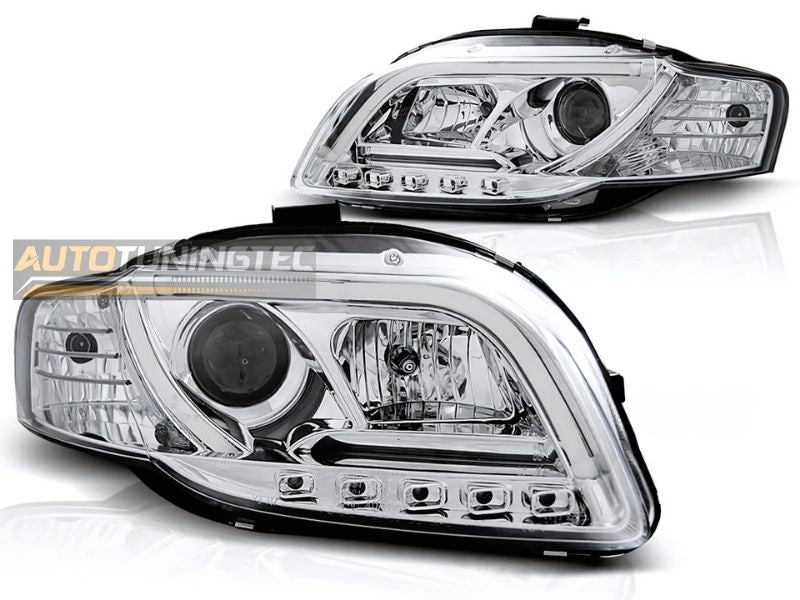 Audi A4 B7 2004-2008 Fari Anteriori LED Lightube DRL Cromati