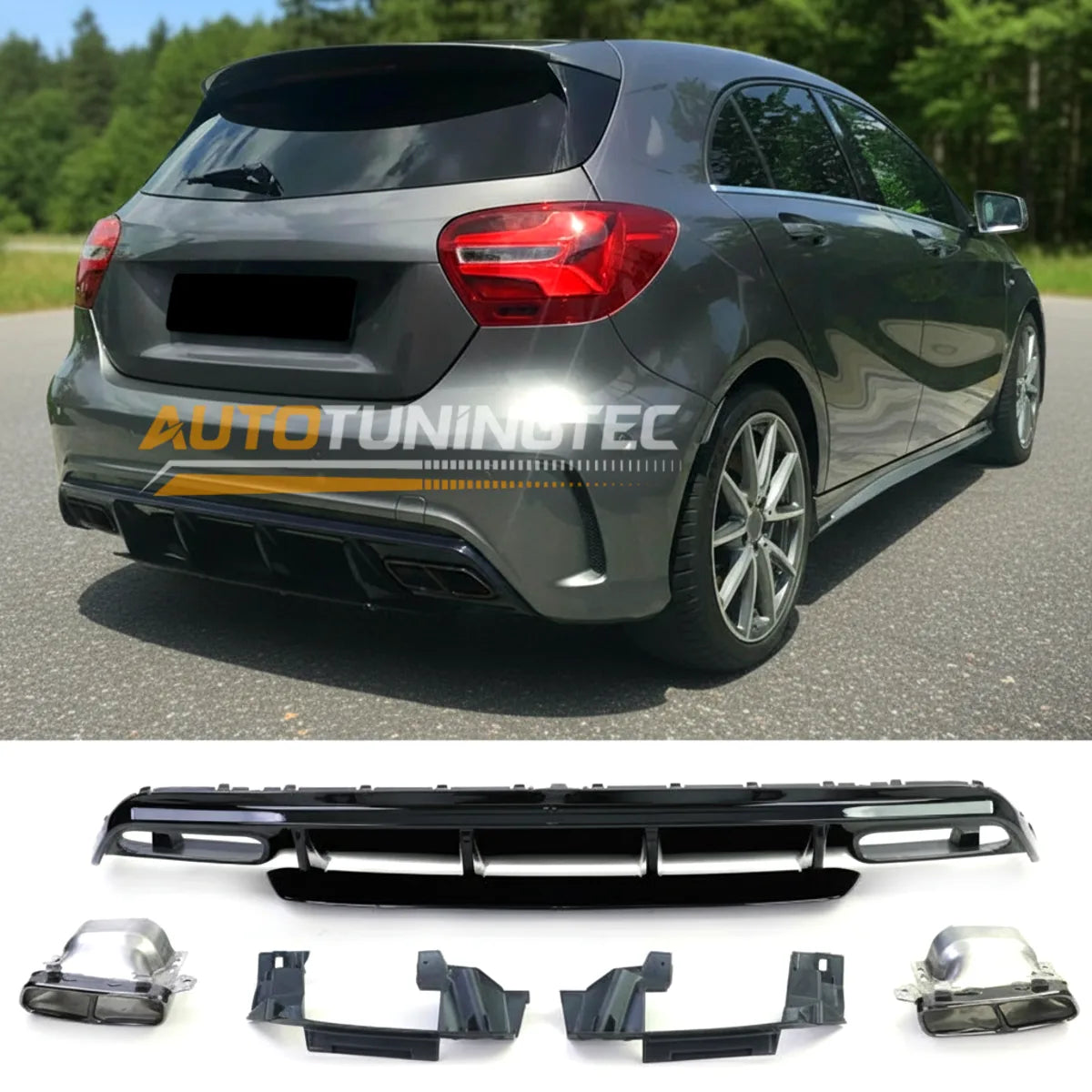 Mercedes A W176 15-18 (AMG Line) Diffusore Posteriore Con Terminali Neri